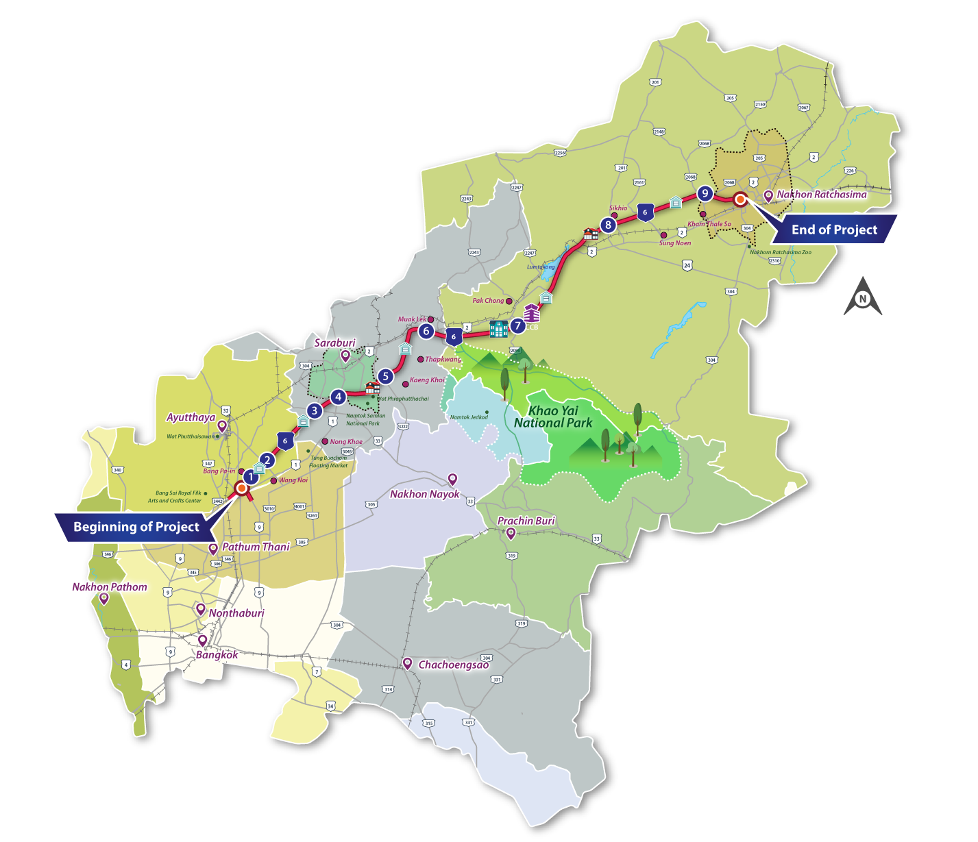 แนวเส้นทางโครงการทางหลวงพิเศษระหว่างเมืองสายบางปะอิน - นครราชสีมา (M6) โดยออกแบบให้มีการควบคุมการเข้าออกอย่างสมบูรณ์ มีจุดเริ่มต้นเชื่อมต่อกับถนนวงแหวนรอบนอกกรุงเทพมหานครด้านตะวันออก(ถนนกาญจนาภิเษก) อำเภอบางปะอิน จังหวัดพระนครศรีอยุธยา และไปสิ้นสุดที่บริเวณทางเลี่ยงเมืองจังหวัดนครราชสีมาด้านตะวันตก อำเภอเมือง จังหวัดนครราชสีมา